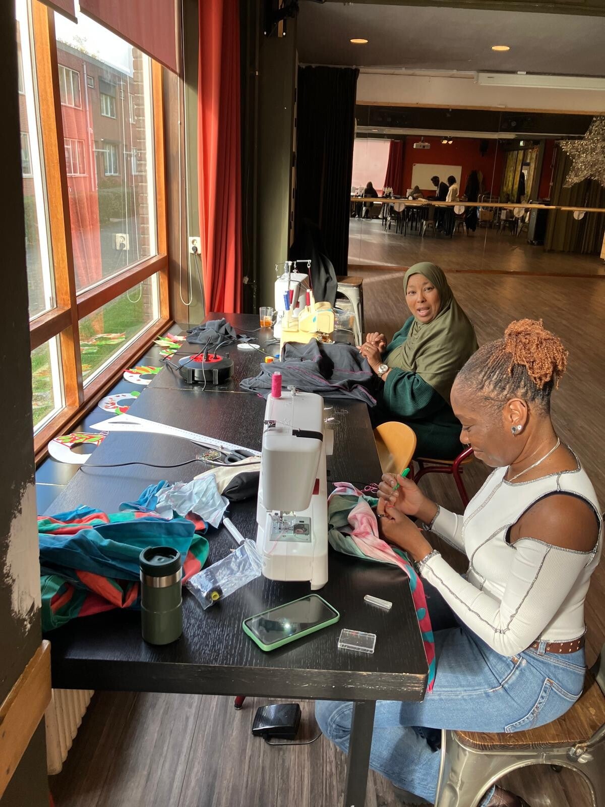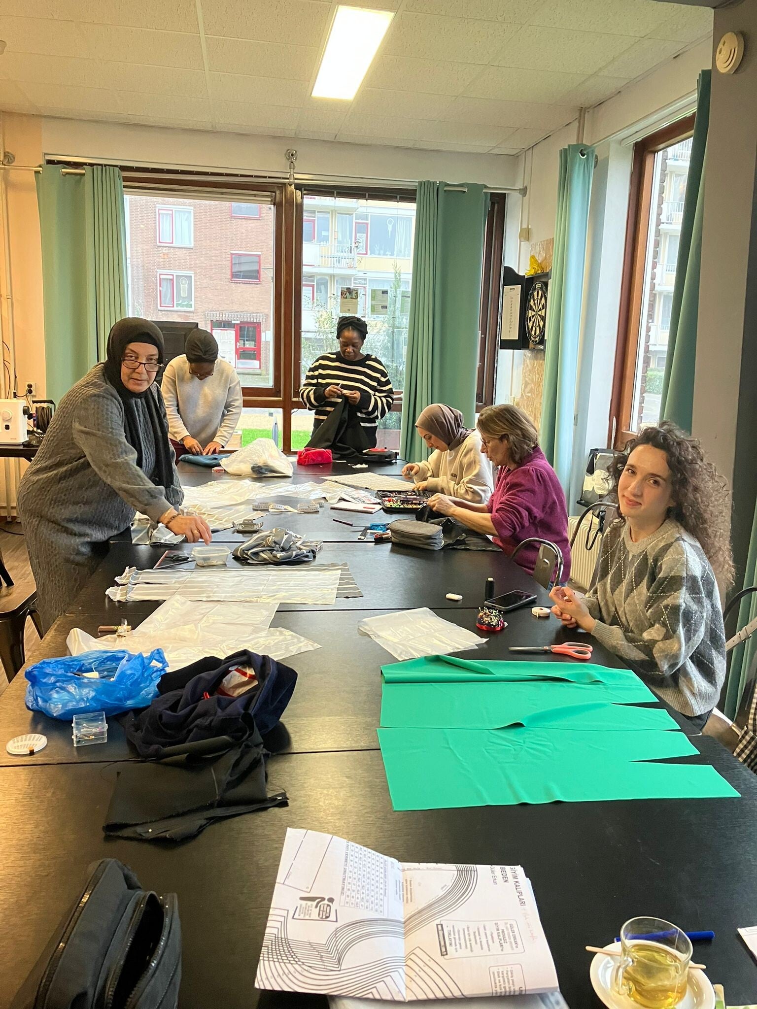 Elke maandag ochtend verzorgt Nuran de Naailes in het wijkcentrum. Momenteel werken ze hard aan een mooie jurk voor zichzelf. En daarnaast hebben ze ook een hoop plezier met elkaar!