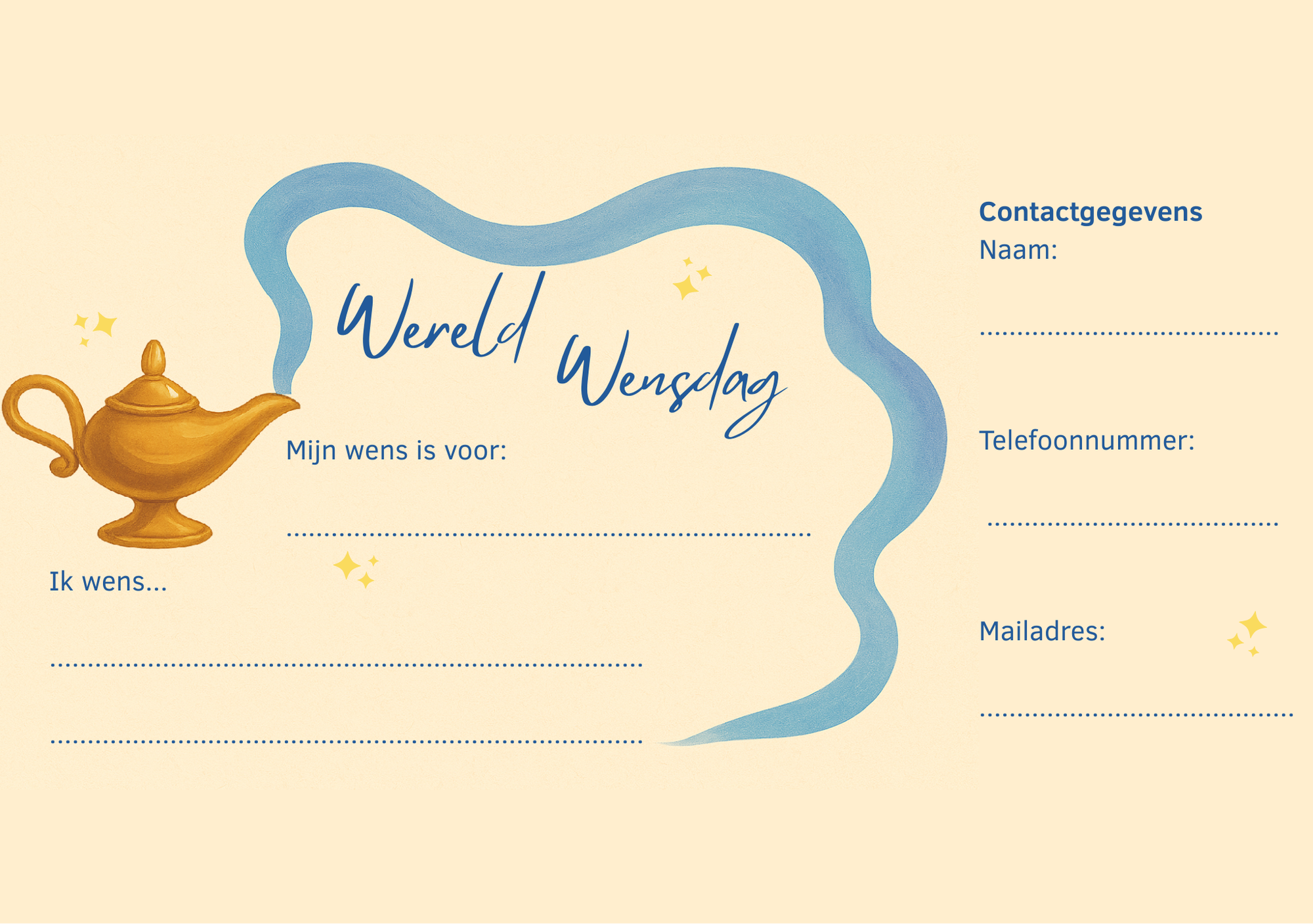 Op 29 april is het Wereld Wens Dag een mooie dag waarop mensen op een laagdrempelige manier een wens kunnen indienen. Deze wensen komen bij ons terecht en wij kijken graag wat we kunnen betekenen op praktisch of sociaal vlak.
